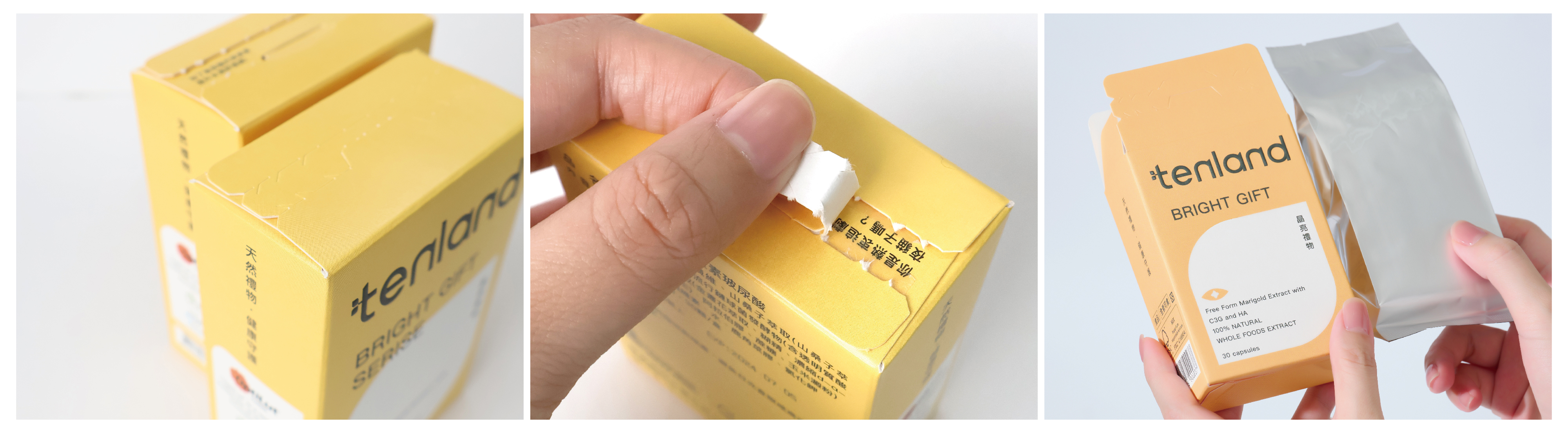 拉鍊封口具有完整密封包裝,更能方便消費者輕易撕下拆除包裝,不用額外使用塑膠膜進行包覆,大大減少一次性的塑膠垃圾。