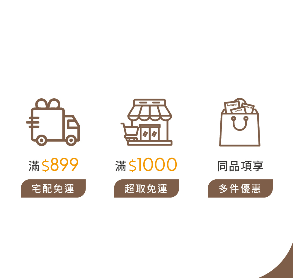 宅配:會員消費結帳金額滿 899元,選擇【宅配】即享有免運費優惠