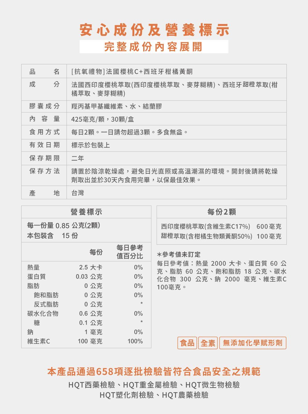 商品名稱:[抗氧禮物]法國櫻桃C+西班牙柑橘黃酮